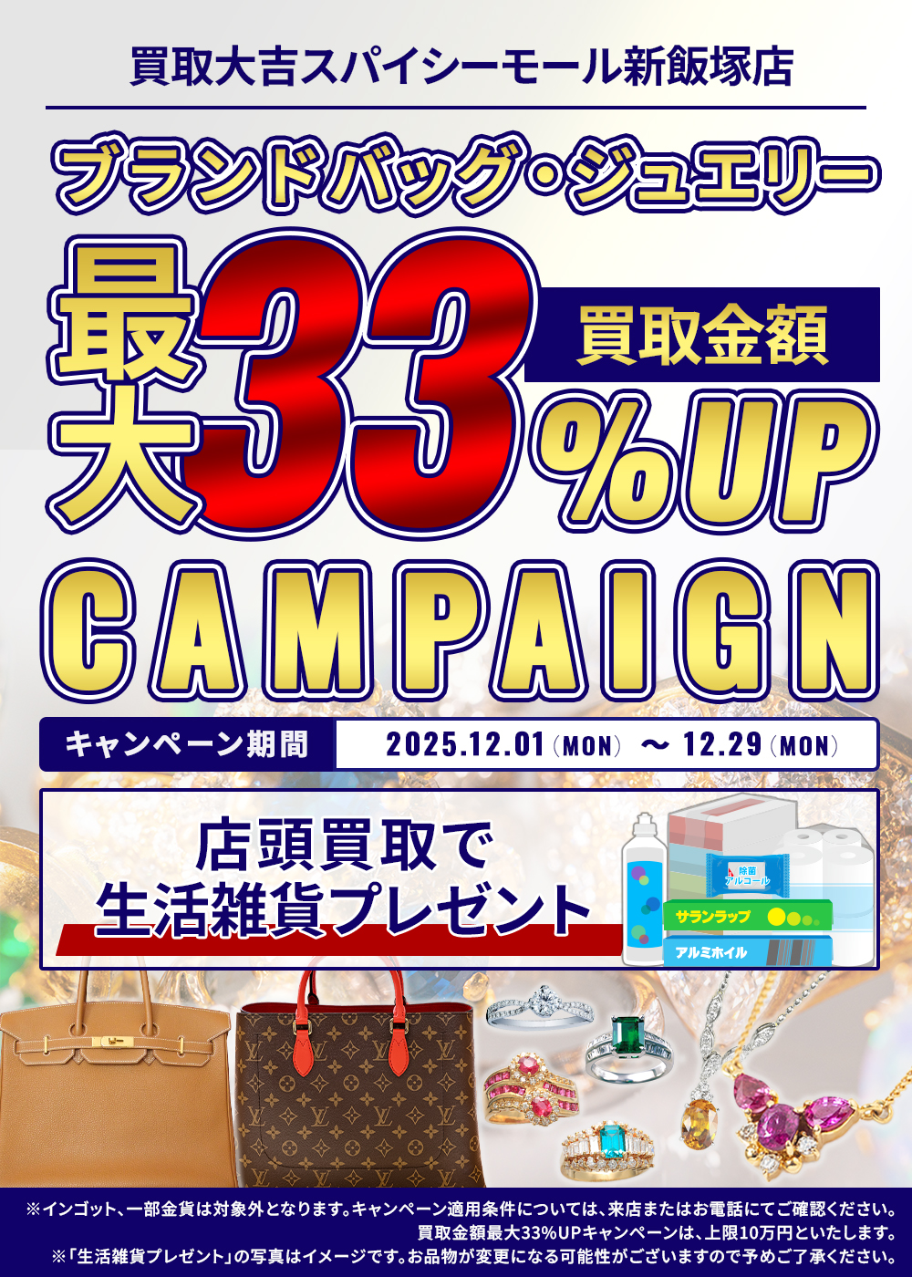 \12月/ジュエリー・ブランドバッグ買取強化!最大33%査定額UPキャンペーン